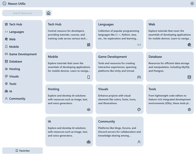 Hub centralizado de recursos para desenvolvedores e profissionais de tecnologia. Organizado por categorias, reúne tutoriais, cursos, ferramentas e conteúdos técnicos para diversas áreas do desenvolvimento, com foco em acessibilidade e praticidade.